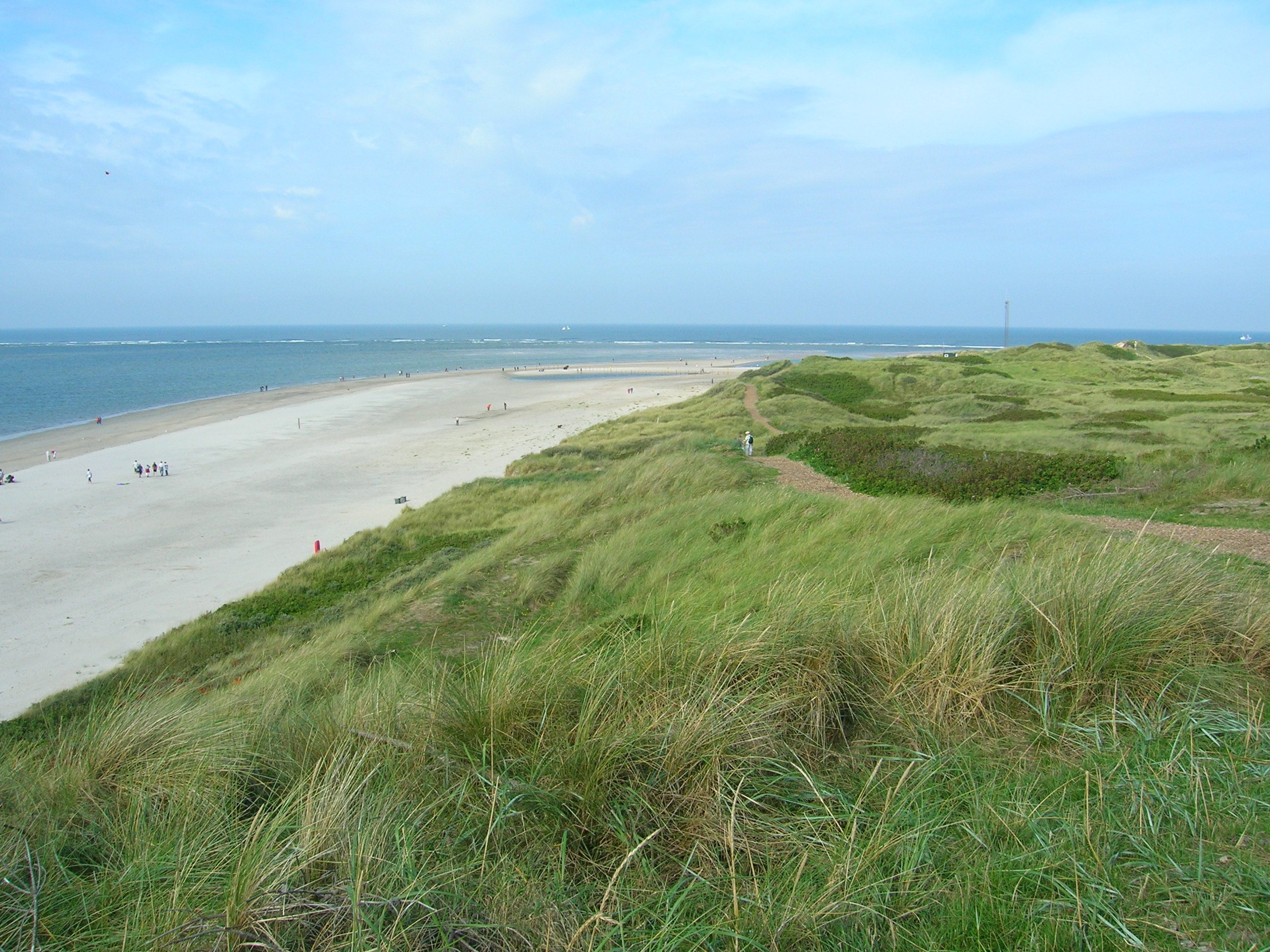 Der Strand um Blåvandshuk Richtung Westen, im Hintergrund sieht man die Wellen sich am Riff brechen. (7/58)