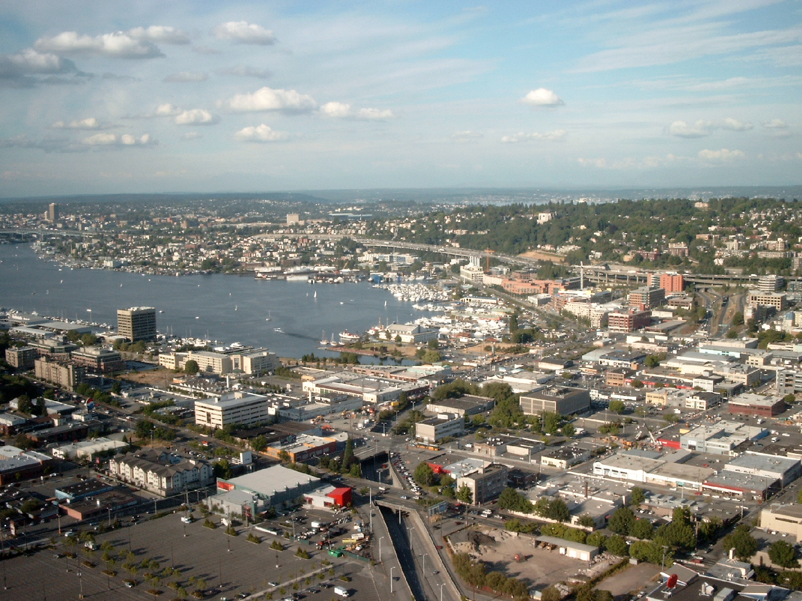 Lake Union, dahinter Lake Washington. Blick nach Osten Richtung Redmond. (6/67)