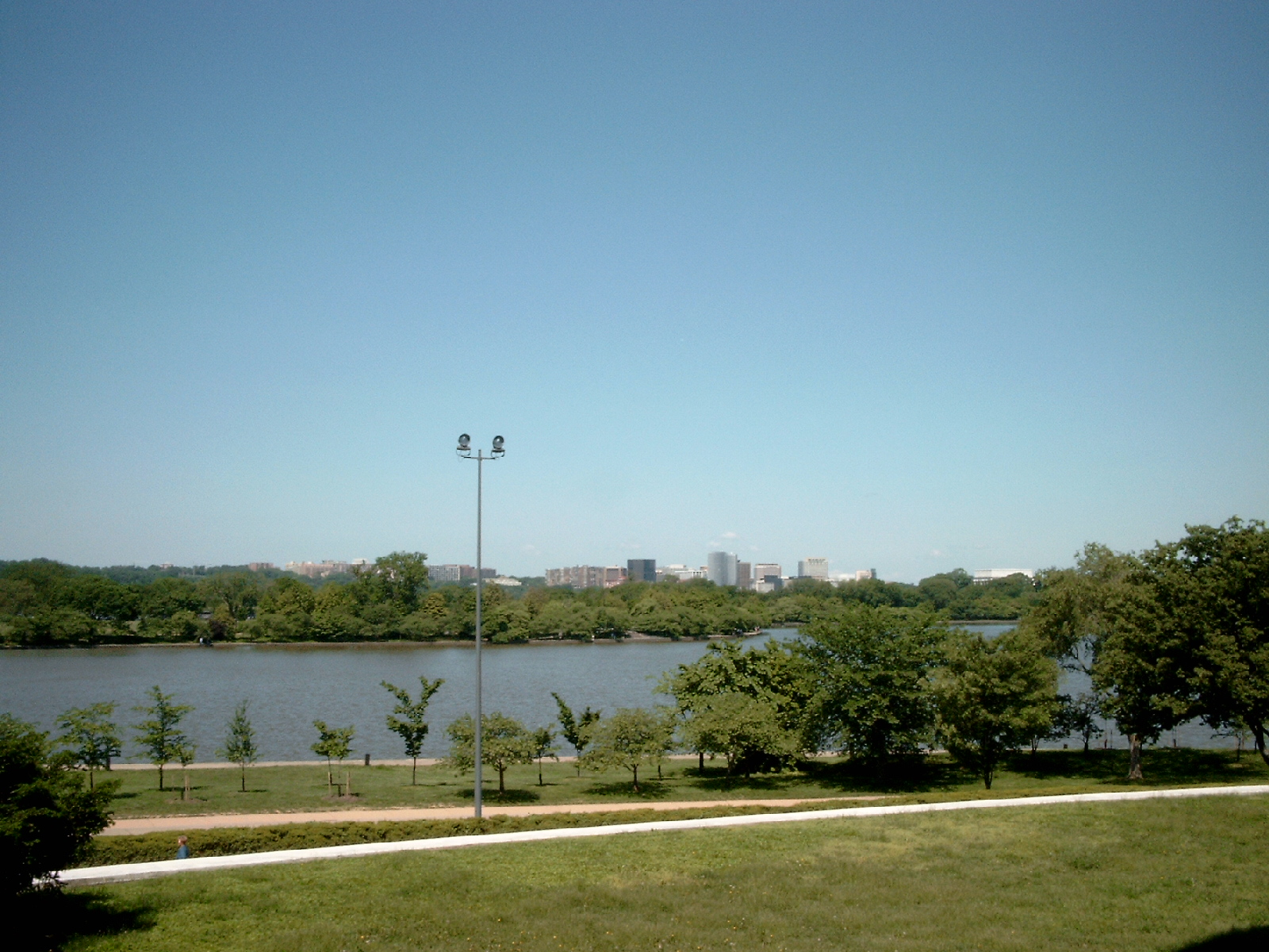 Blick vom Jefferson Memorial über den Tidal Bassin (einem kleinen See am Rande des Potomac River) auf den Watergate Complex. (13/57)